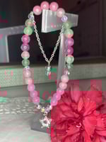 Made up of 6mm bead with silver hardware. Beads are glass and dyed jadeite.
